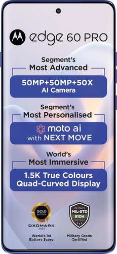 Software Commitment: Users benefit from the clean Motorola Hello UI running on Android 15, and are promised three years of major OS updates, ensuring long-term software security and feature availability.Edge 60 Pro Premium Display and Rugged Design