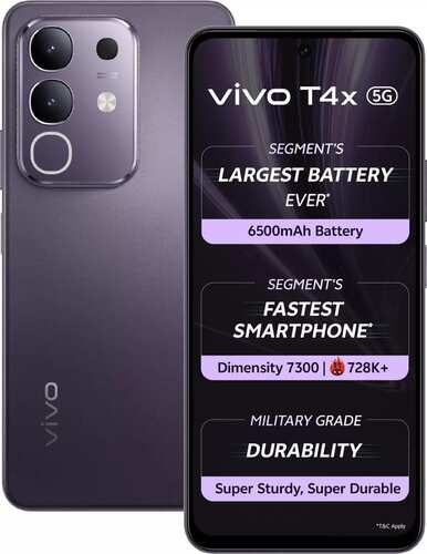 Vivo T4X price starts at ₹14,499 and goes upto ₹19,499. Vivo T4X is available in 4 options. Market Status of Vivo T4X is Released.